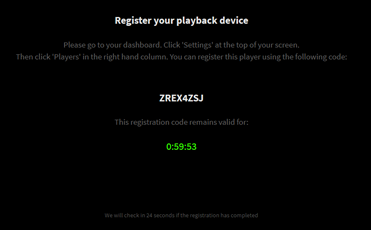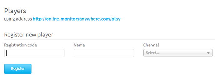 the TV, name the Player and select a Channel from the drop-down list. Click Register to start playing the content on