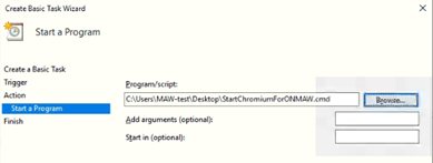 button and select the StartChromeForONMAW.cmd file on the desktop.