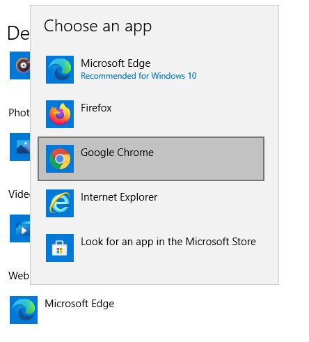 If not asked, go to Start > Search for Deafult Apps > in the Browser section, select Google Chrome: