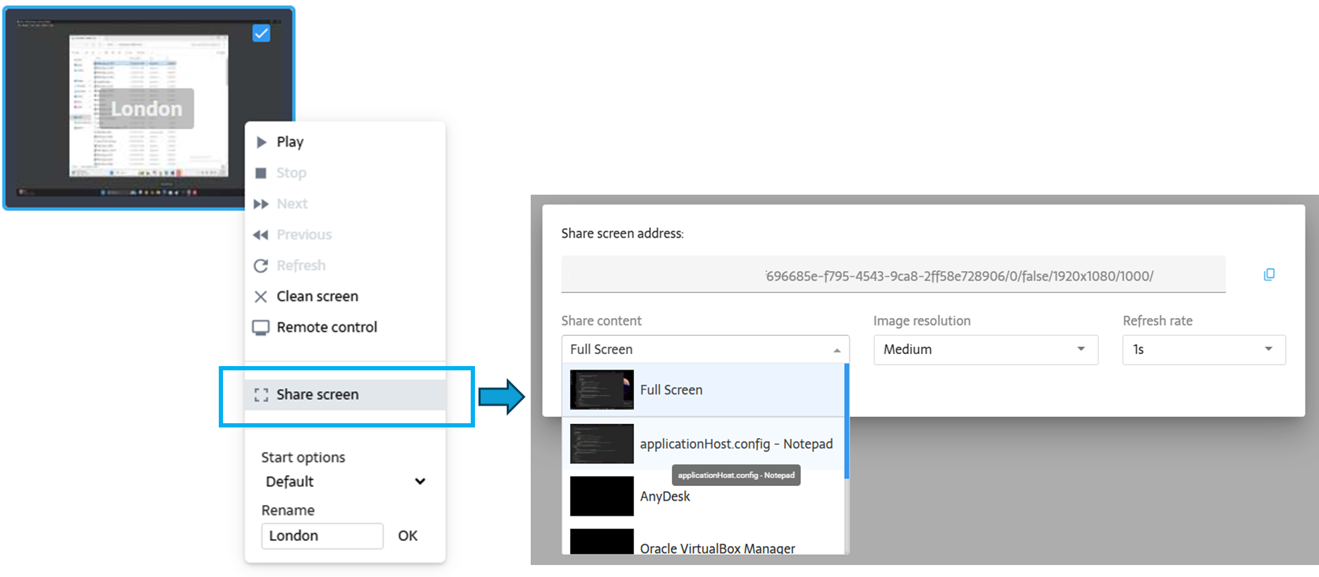Right-click the thumbnail of the screen you want to share.
