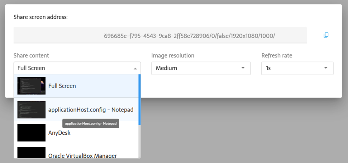 Copy the generated hyperlink and open it on the remote PC.
