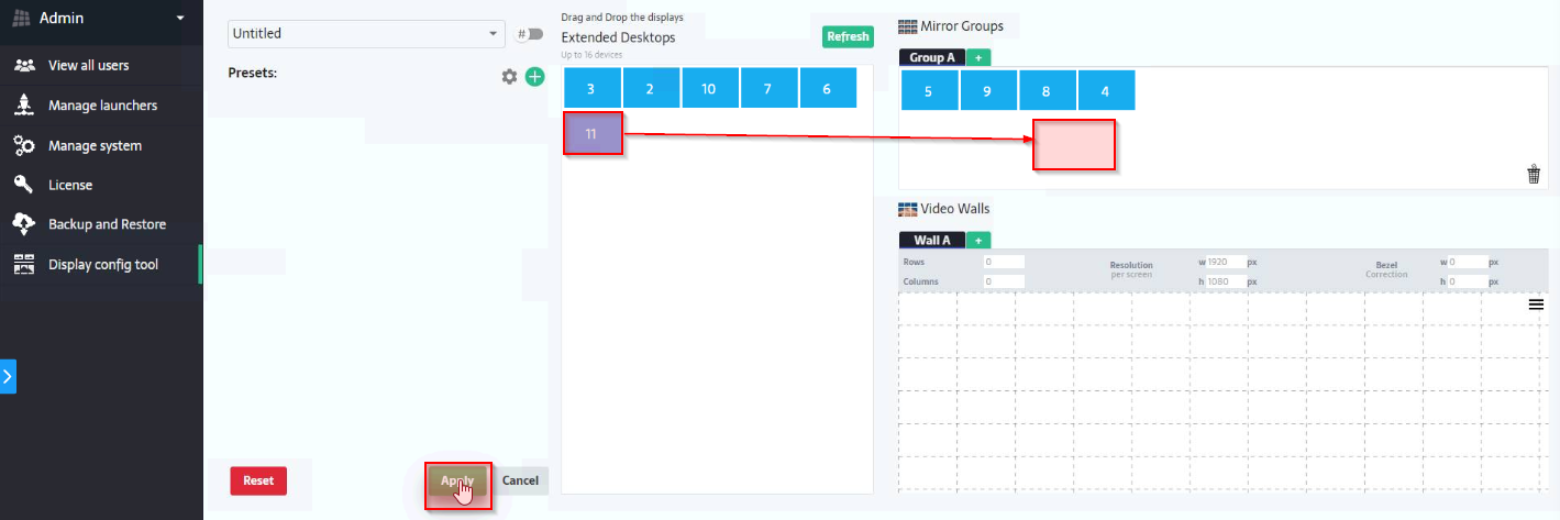 Drag-and-drop the screens to the Mirror Groups Area to set up your Mirror Group,