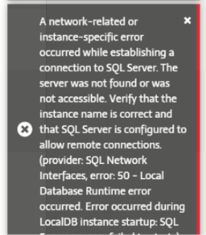 If you encounter the error message "A network-related or instance-specific error occurred..." when logging into MAWi: