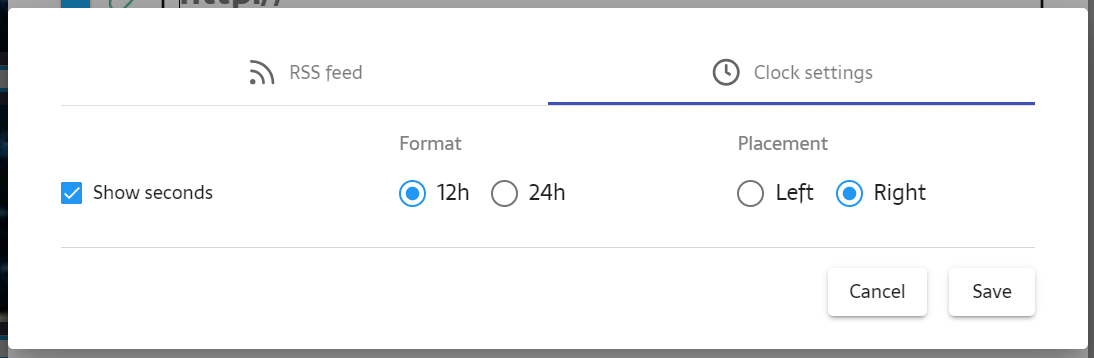 - Placement: Position the clock on either the left or right side of the ticker (default is on the right).