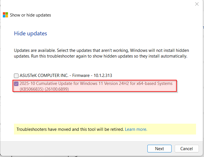 and remove KB5066835 (some users also removed KB5065789).