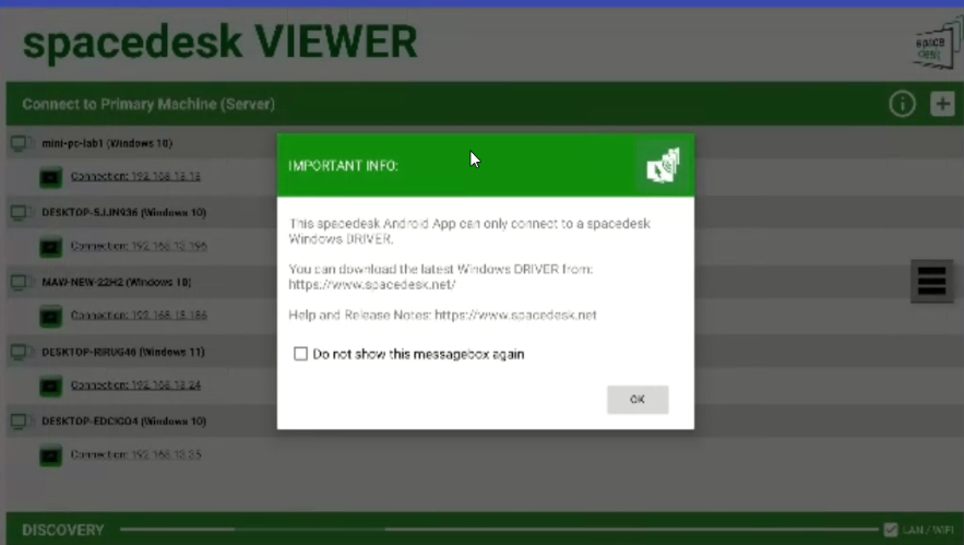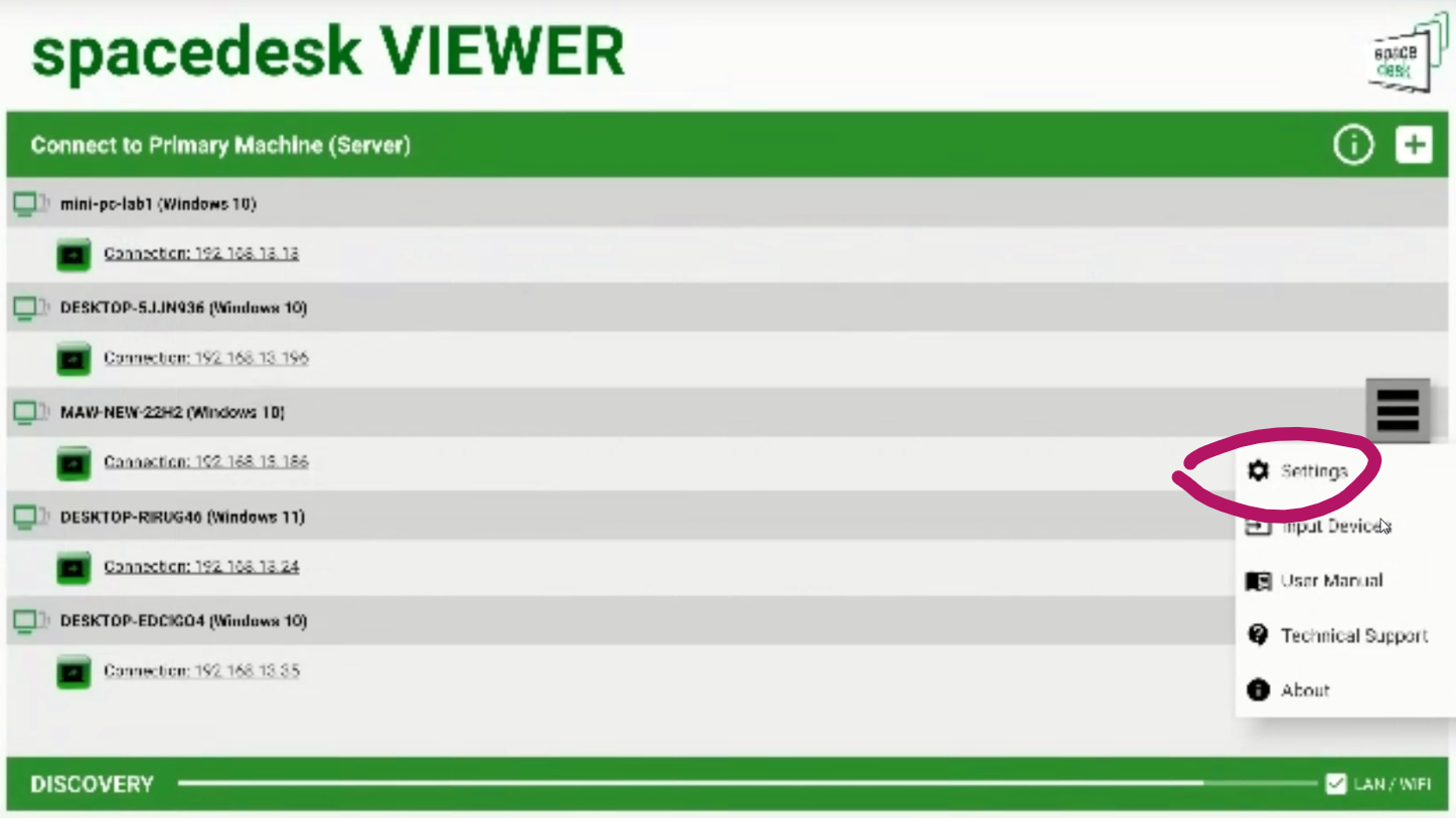 Step 3: Set spacedesk manually to connect to the MAWi System