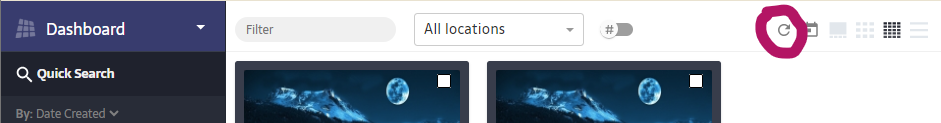 From the Dashboard view, select the refresh button to initiate a restart of the agent's process on the machine: