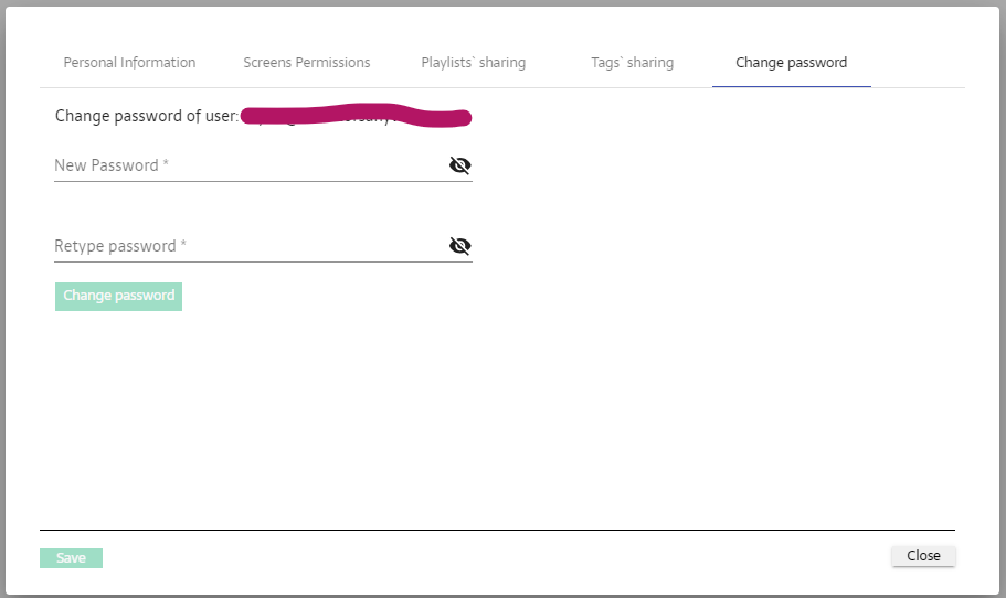 To change a password for an end user, click "edit" and navigate to the "Change Password" tab.