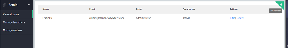 In the "View All Users" console, navigate to the green "+" button located at the top right corner.