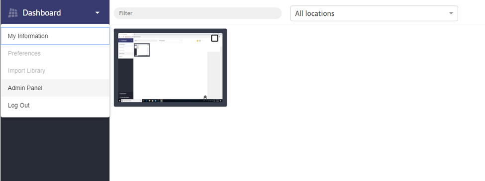 Access the user management console, click on the Dashboard menu and proceed to the Admin Panel.