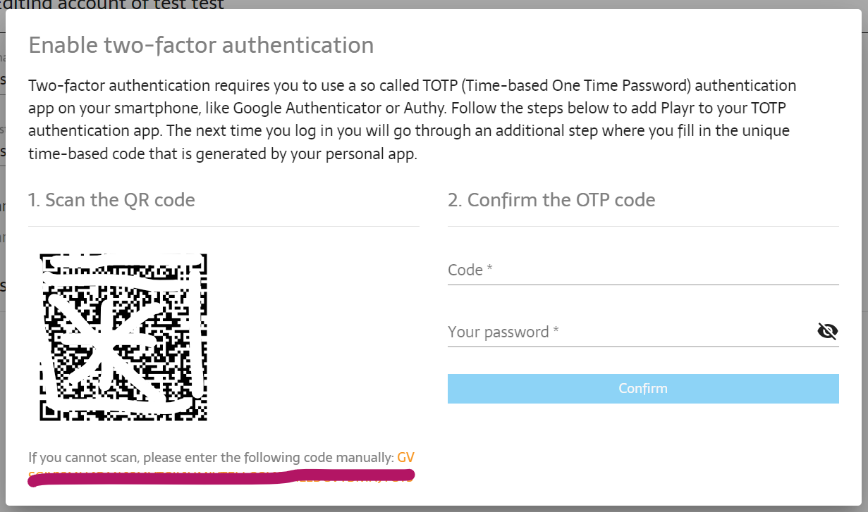 1. For administrators: Navigate to the Users management console. Here, you can enable 2FA for individual users. Simply select a user to edit, then press the "Activate Two-Factor Authentication" button.