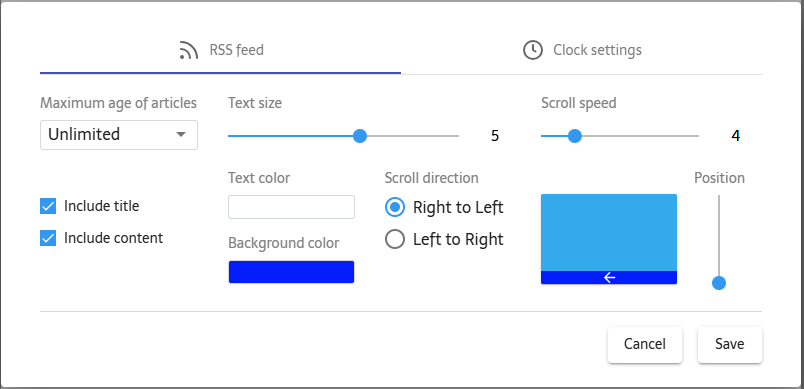 Clock Display – Enable or disable a real-time clock, which can be shown alongside the ticker text.